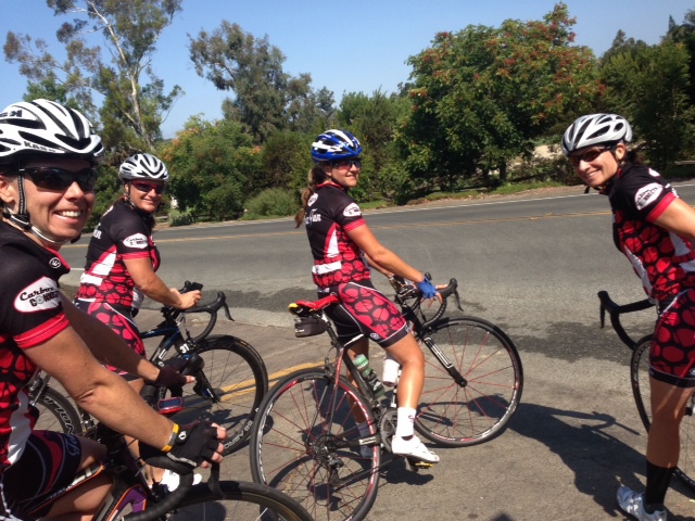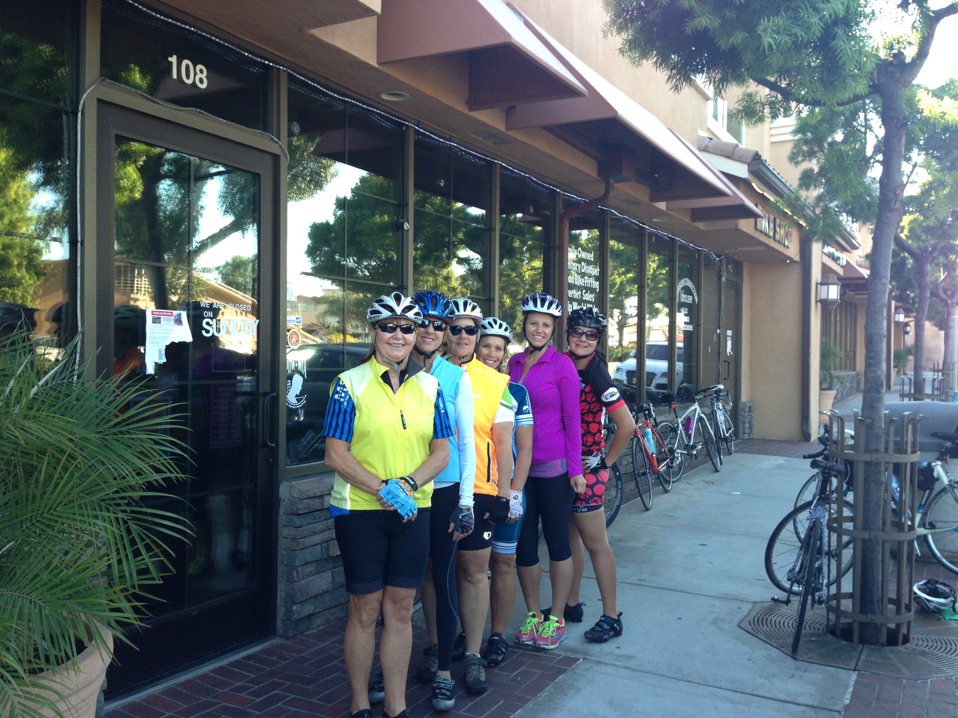 While a small team of the Advanced gals were off enjoying the Poker Ride, the Saturday group ride headed to the Stratford Court Cafe in Del Mar.