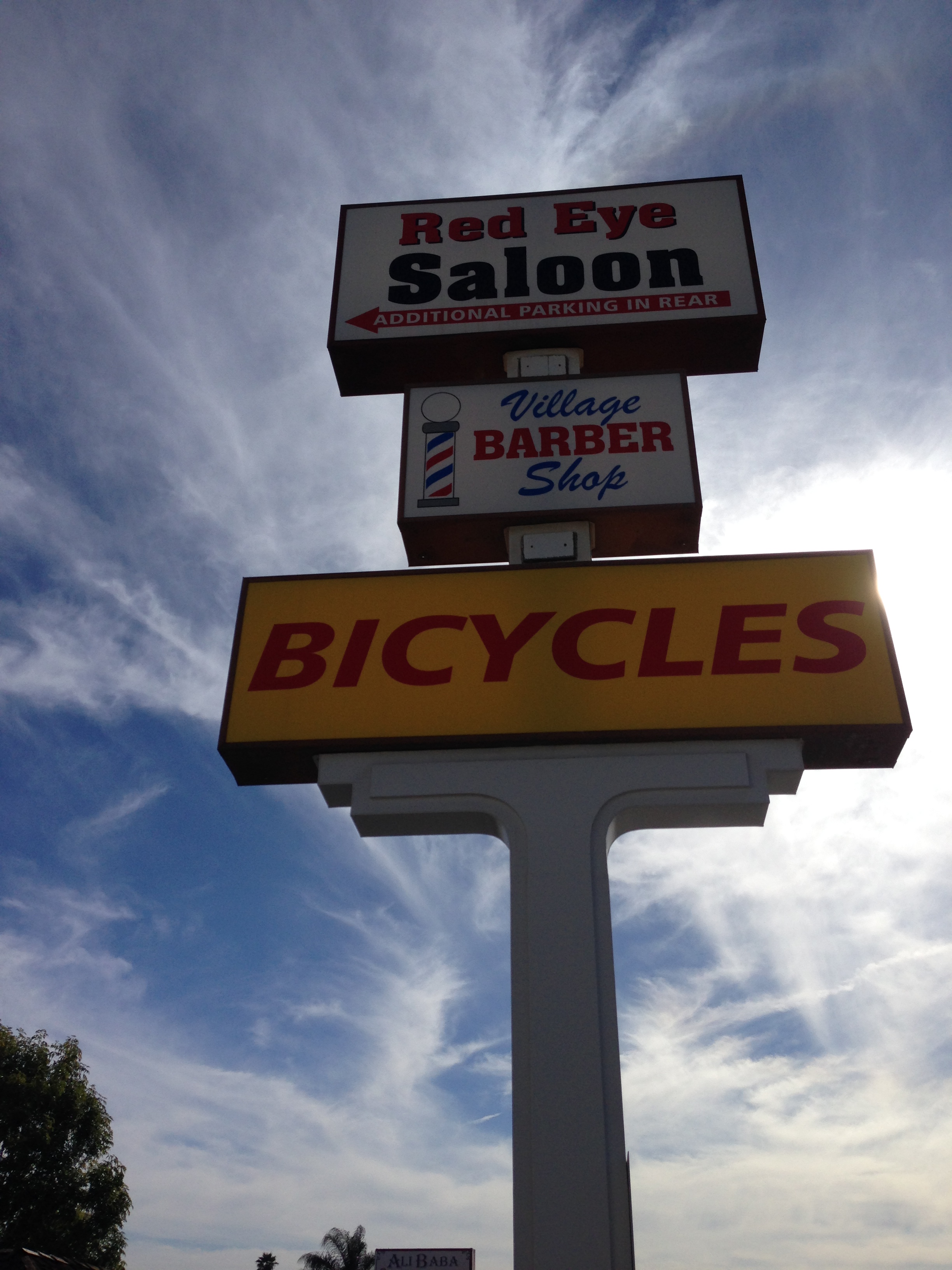 It was noted somewhere along the loop that Jill’s tire seemed to be a little low, but not wanting to kill the mood and trooper that she is, Jill just soldiered on with her low tire pressure, and eventually we worked our way back up to Fallbrook. We decided to head to a bike shop to get her fixed up properly for the remaining ride home, and so headed to what appeared to be a bike shop on Main Street (according to its Facebook page) – no such luck. So we headed back toward the “Bicycles” sign we passed on the way in to Fallbrook. See the sign below, it really does look promising, right?
