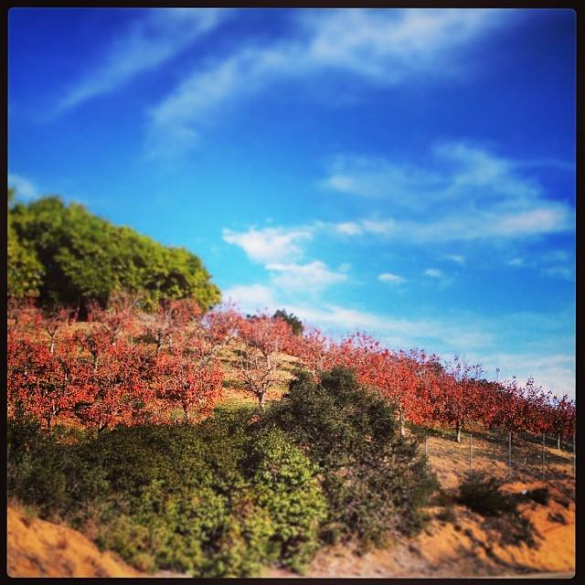 Although we were seemingly surrounded by fruit groves (pomegranates, citrus, and avocado), I failed to stop and pilfer any for my depleted tummy. Toward the end of our loop, we noticed large stands of leafless trees with globs of orange fruit. None of us had ever seen persimmon trees before, but here they were – by the hundreds. I taunted Jill that she better take a picture of them while cycling, uphill, but then thought better of it as poor Jill is swerving all over the road doing her best. I think they turned out well.
