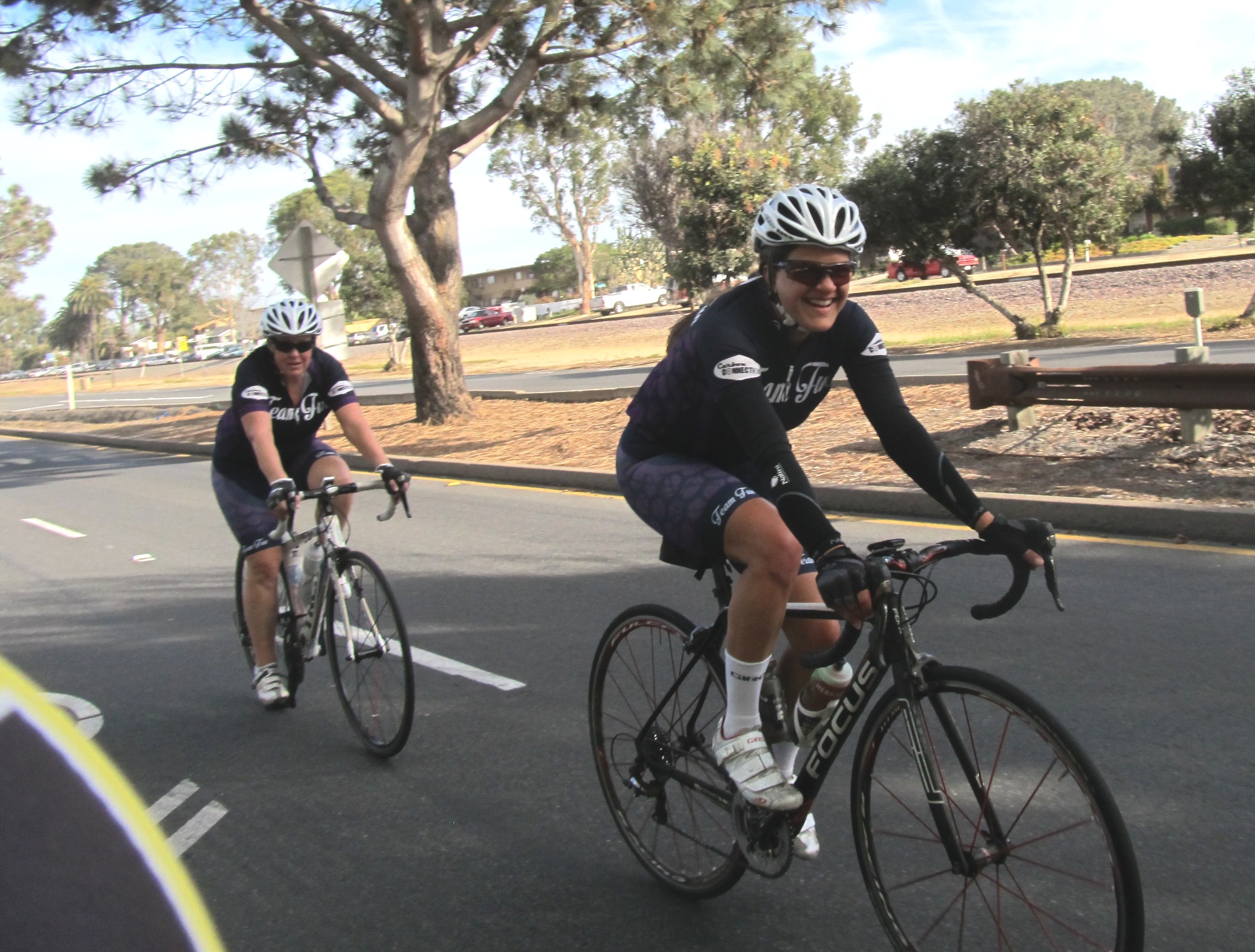 It was quite nice and smooth. And there was something exciting about having various team members popping through our little trio at various places en route. I thought all the 80 milers had gone past us in S Carlsbad when Heather & Kim suddenly turned up from behind in Leucadia. A couple of miles later we were then caught by Julie and another rider in Encinitas. Then on our return trip to Carlsbad we had a nice surprise when Judy & Candace came passing by in a blur of Team Fun colors.