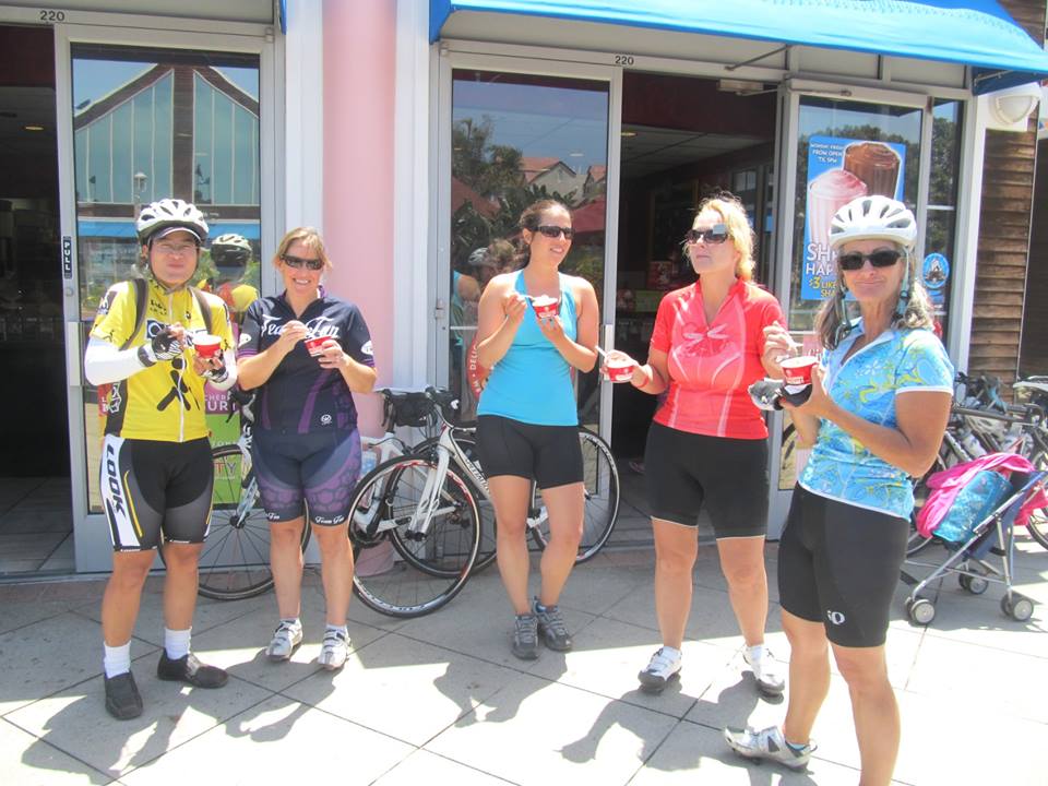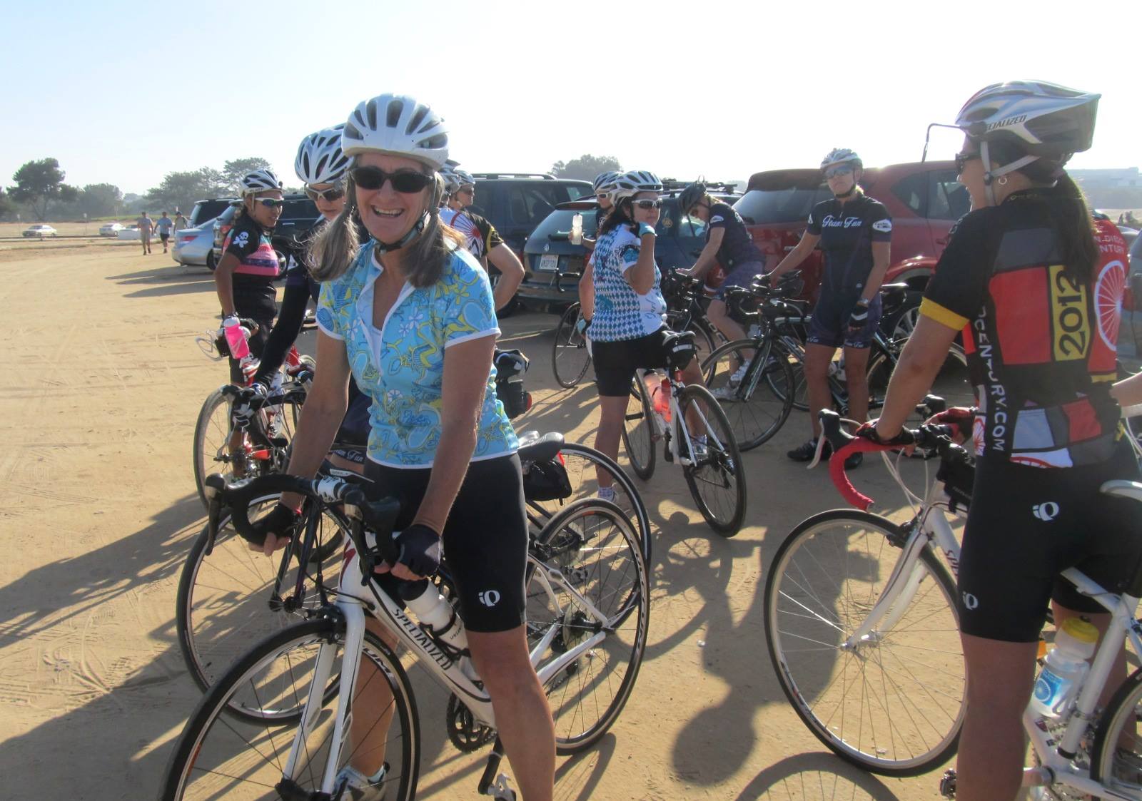 I was never so happy to see an overcast sky with heavy fog as I was when I woke up yesterday morning. A heavy marine layer is the closest thing to rain we can generally hope for during the summer months in Southern California, and after humidities below 5% and temperatures soaring above 100 this past week, we’ll take any relief we can get. Unless you’ve been living under a rock, you have most likely heard about the wild fires that spread throughout San Diego’s North County starting this past Tuesday. Many of our members live in North County, and several were forced to evacuate from their homes. Everyone was affected by the poor air quality and the stress of not knowing where fire would break out next, how it might move, and how quickly the brave firemen coming from all over the state could get each of the 11 fires under control. While there was valid concern over the air quality for riding yesterday, we were all anxious to have a little beauty and lightheartedness in our lives – and of course, the feeling of freedom and release that one can almost always find on her bicycle.