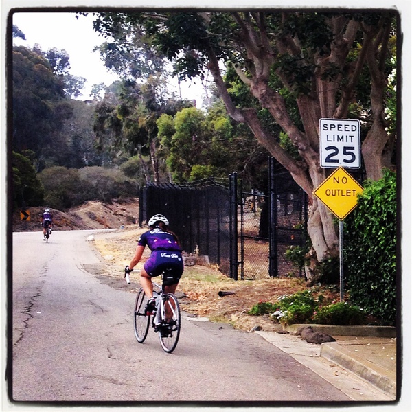 The morning began sticky and cloudy, and although I was in a bit of a daze (starting a ride at 6:20 am will do that to me), I got to the Gliderport much earlier than expected. By the time we finally got going (finally to me, since I’d been there way too early), I was feeling like an ice cube.  I should’ve bottled up that cool and remembered it for later in the day… When I’m cold, there’s nothing I want to do more than get that blood moving, so we shot down La Jolla Shores and were on our first climb in no time.