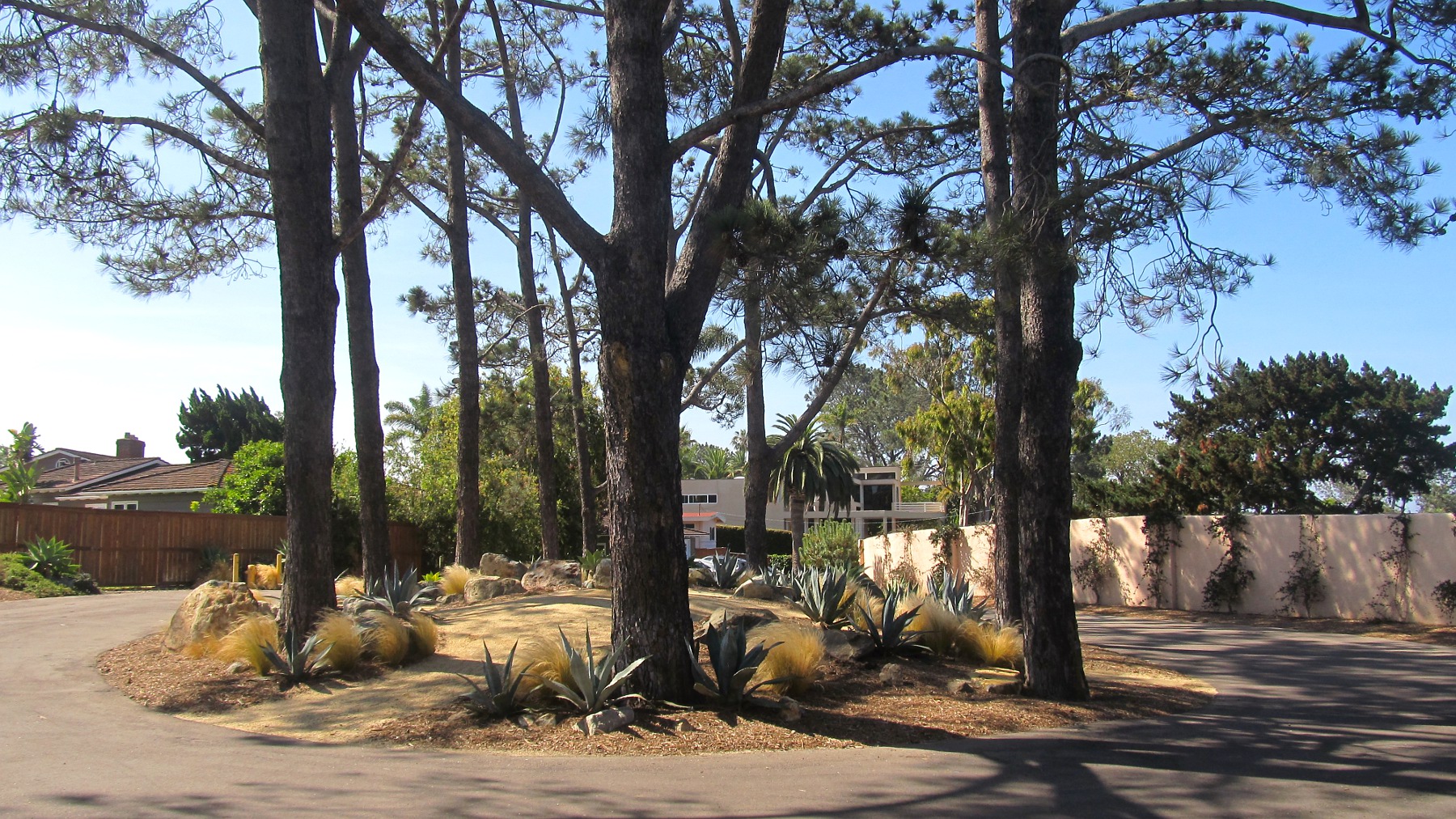 I could almost swear that I didn’t remember 9th St and Hoska Dr being that steep for actually a bit more than two city blocks, but the gals were nothing if not hardy troupers (probably due in no small part to having survived encounters with spin instructors before) and made it all the way up to Crest Dr after some paperboying on the steepest pitch. Luckily for me, the view along Del Mar Heights’ Crest Dr is quite a powerful analgesic. The wonderful unique custom houses with friendly benches out on the heavily traffic-calmed lane and glimpses of the lagoon beyond the hill crest. Even the local drivers were very friendly. One even rolled down her window to cheer and applaud when we stopped en masse at a stop sign.