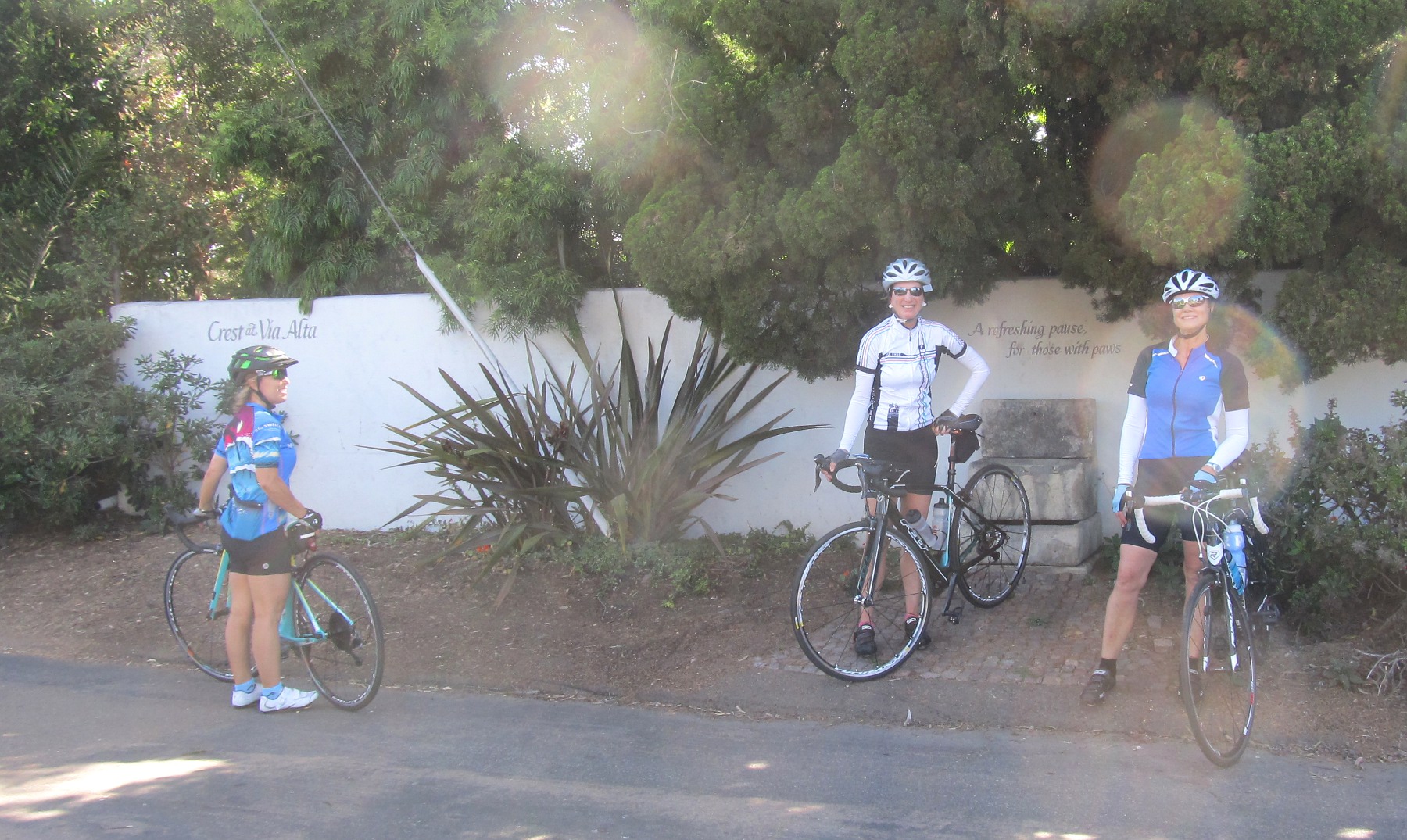 Eleven fun gals gathered in the parking lot at the Ralph’s on Avenida Encinas in Carlsbad last Saturday for our weekly ride. Julie D and Heather K shepherded the B group of seven through a slightly modified route partly inland into Rancho Santa Fe before looping back to the coast via Carmel Valley. With yours truly (Michell) was a C group of four for a shorter ride down to investigate the many gorgeous custom houses and hidden treasures of Del Mar and Del Mar Heights.