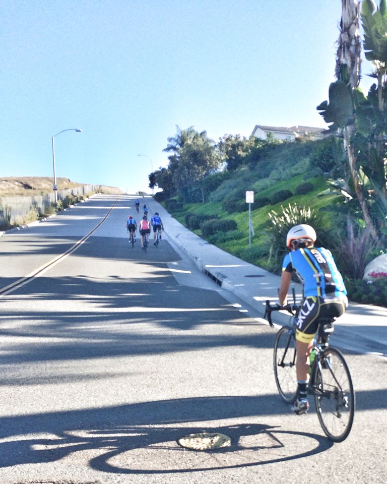 One of my least favorite climbs around is the hill you access by taking a right turn onto Alicante off Alga Road just where it starts to get steep.  You continue flat and downhill, only to come upon a vista that could definitely put fear into the hearts of even a seasoned cyclist.  You can see this hill driving east on La Costa, and I’m not sure how many times my husband has asked me, “What is that hill?”  And I say, “That’s El Fuerte Flipside” (its Strava segment name), and he’ll say something like, “That really is awful, isn’t it…”