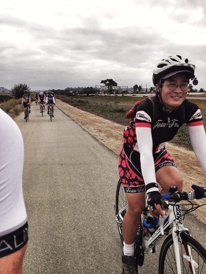 I believe this had crossed our minds at some point since Team Fun was established back in August 2013, and finally we have decided to do something about it. We would like to honor Michell Thitathan aka Theoperasmorg as Team Fun member of the quarter. She is the most dedicated cyclist I know, and has been a devoted and inspiring ride leader for TF since our fifth ride back in September 2013! While the rest of us stay in bed until an hour or so before our Saturday rides, Michell rides her bike from her home in San Diego, in the dark, to join us as a Team Fun ride leader. As a knowledgeable cyclist, she has helped out countless new TF members who not only are new to TF, but new to cycling. She is the ideal of what a ride leader should be, humble, patient, helpful, prepared, owns a great sense of direction (very important when riding new routes), encouraging, fun-loving, safe on the roads, and takes great photos and videos on top of that!