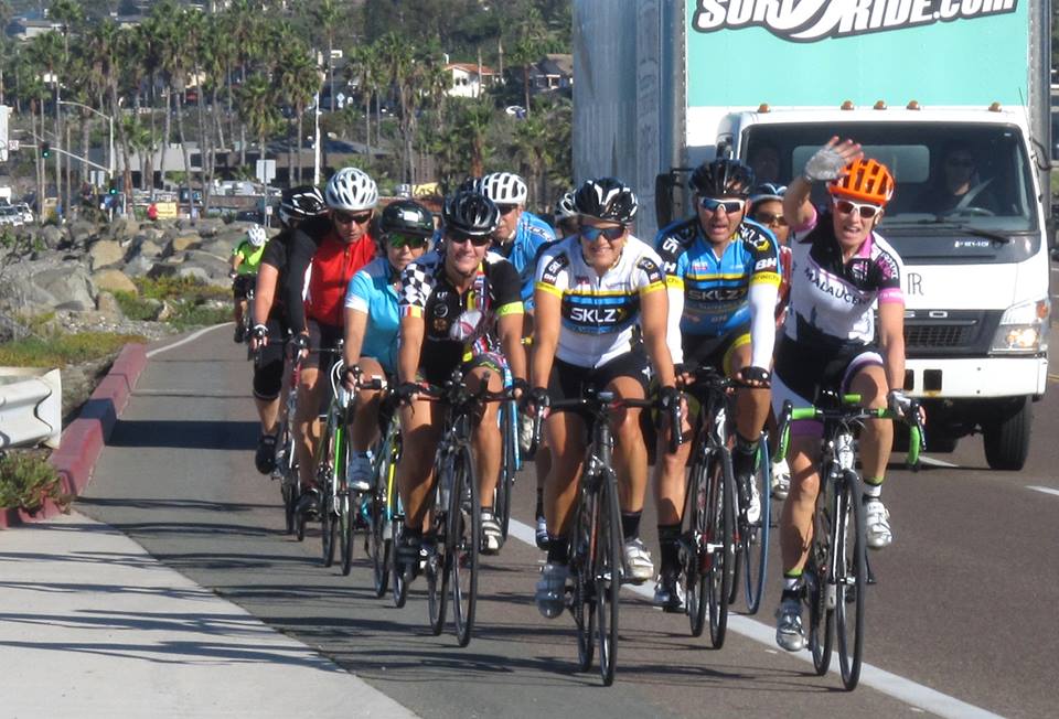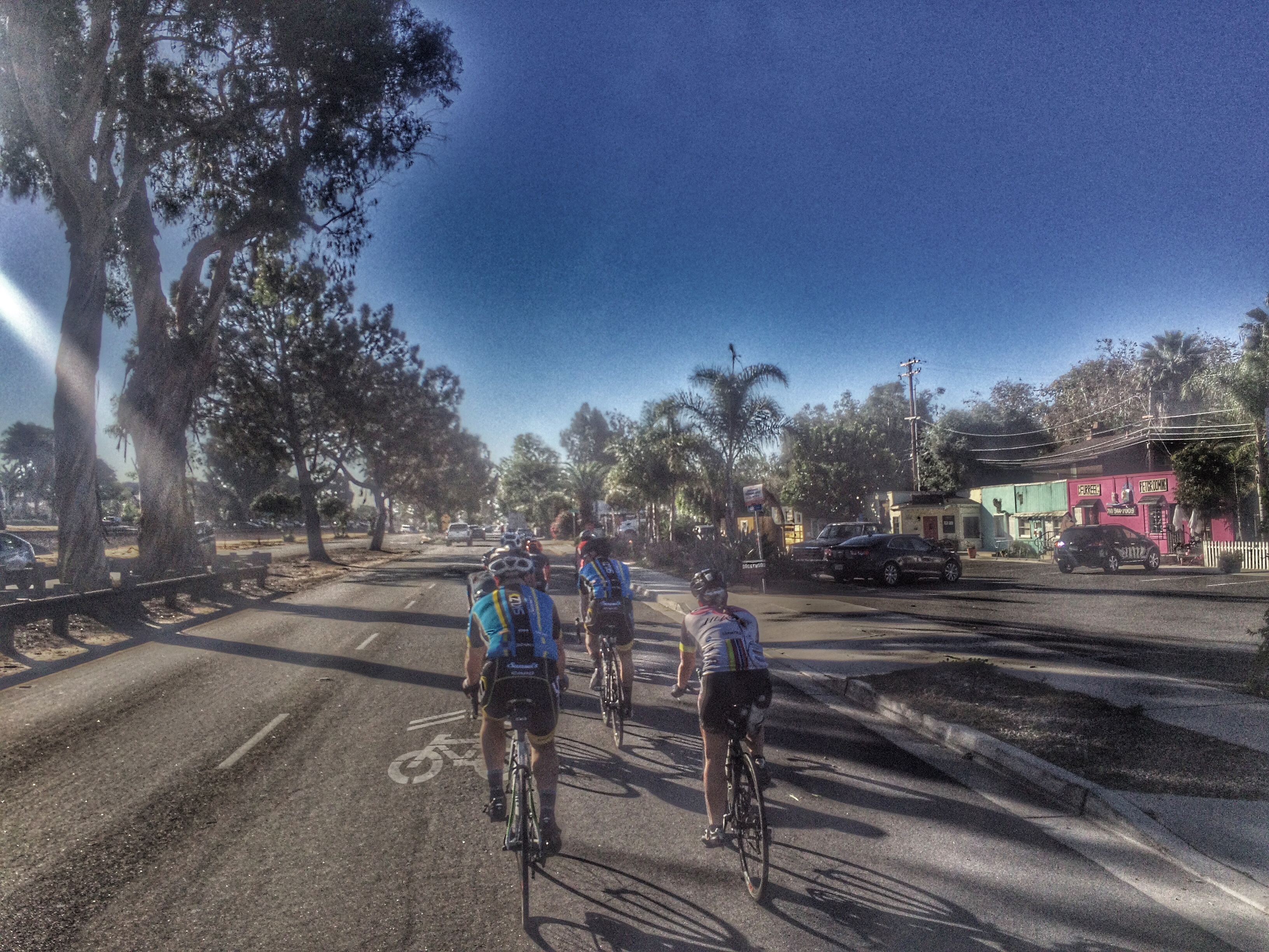 It seems like every week, someone new tries out the group. This week, a woman I met about two years ago at Bressi Ranch when I was wearing a fresh-off-the-presses Team Fun kit finally had a chance to join one of our rides. We even got to add an additional “Heather” to the mix, as evidenced below in the picture of Three Heathers.